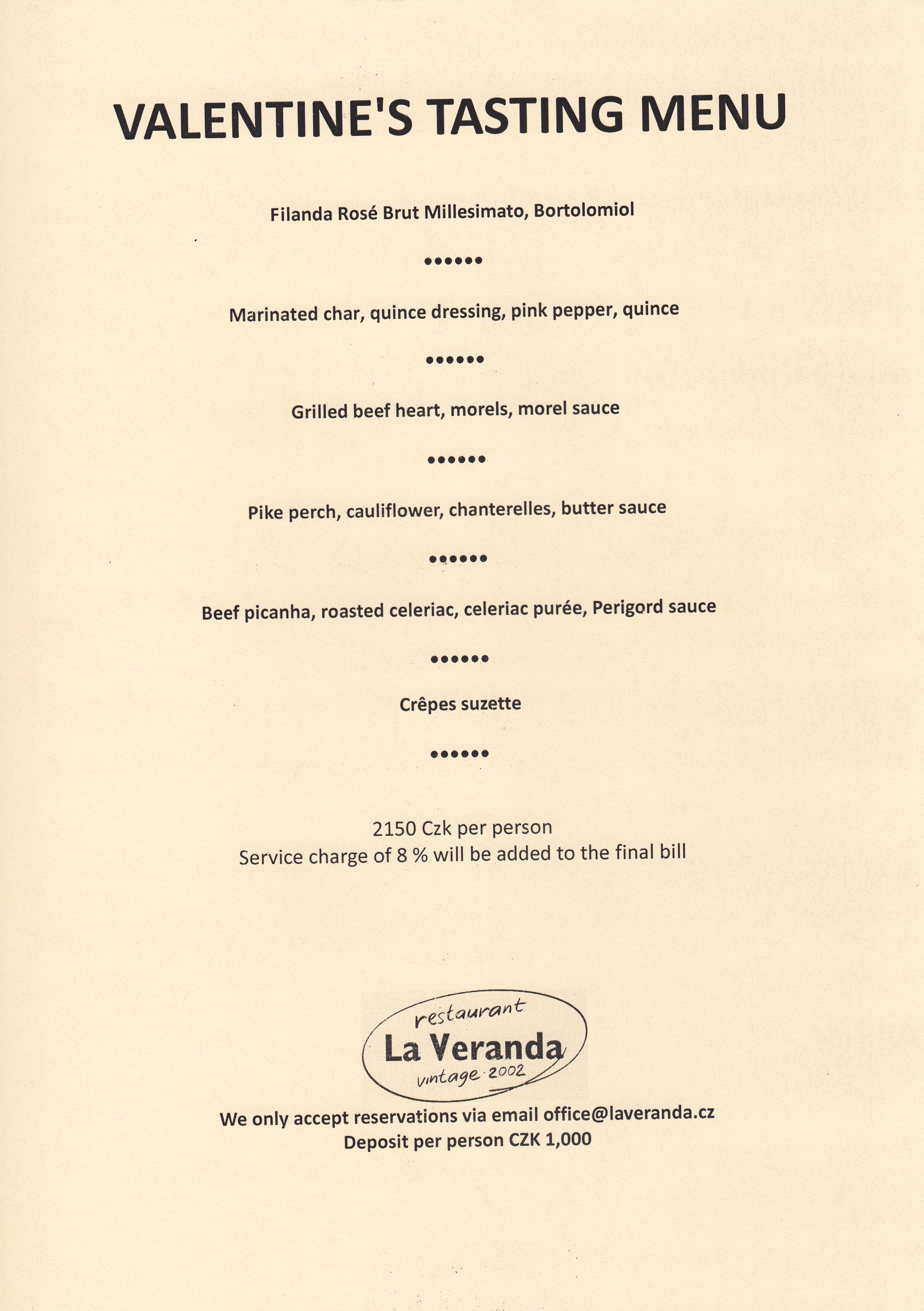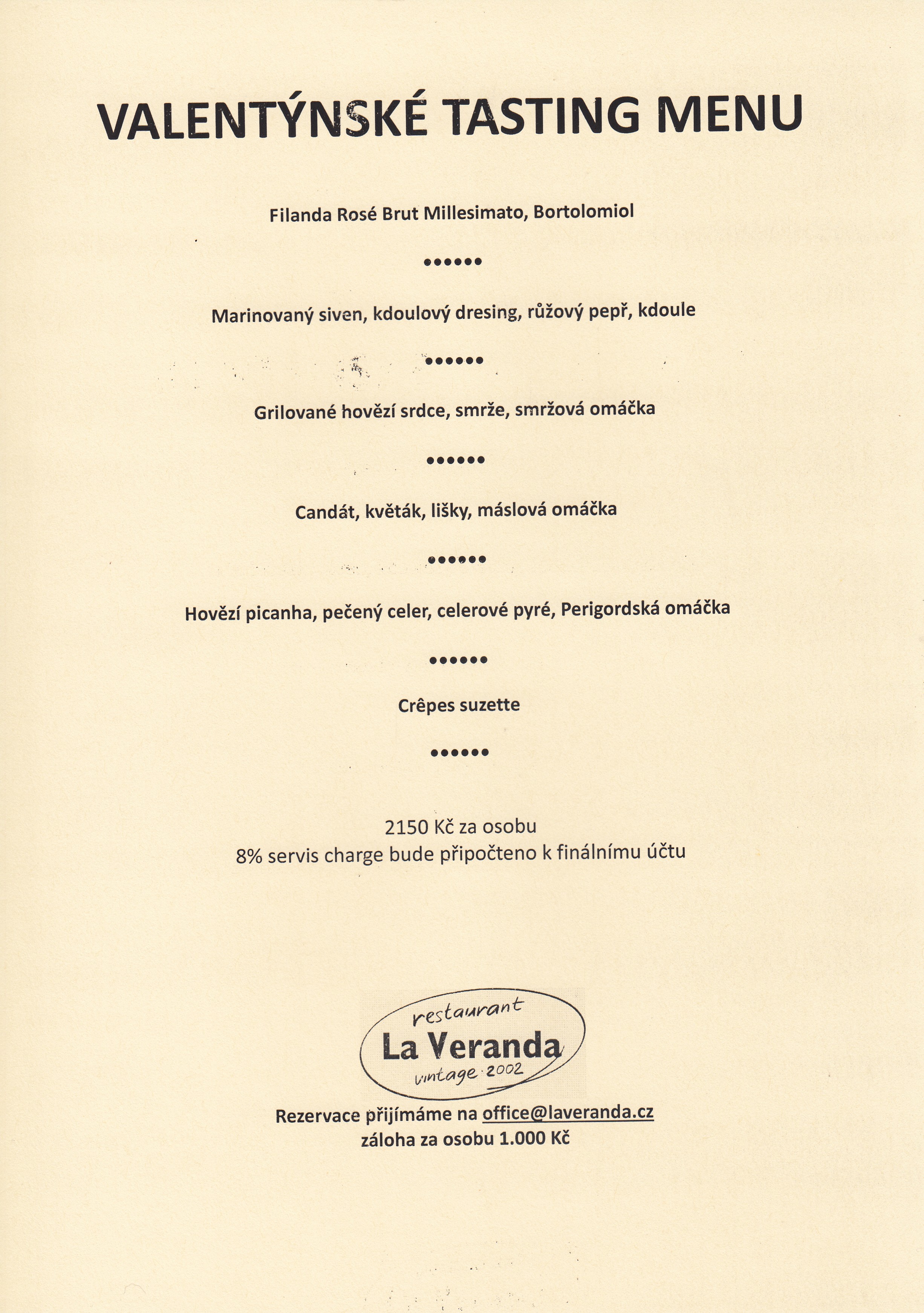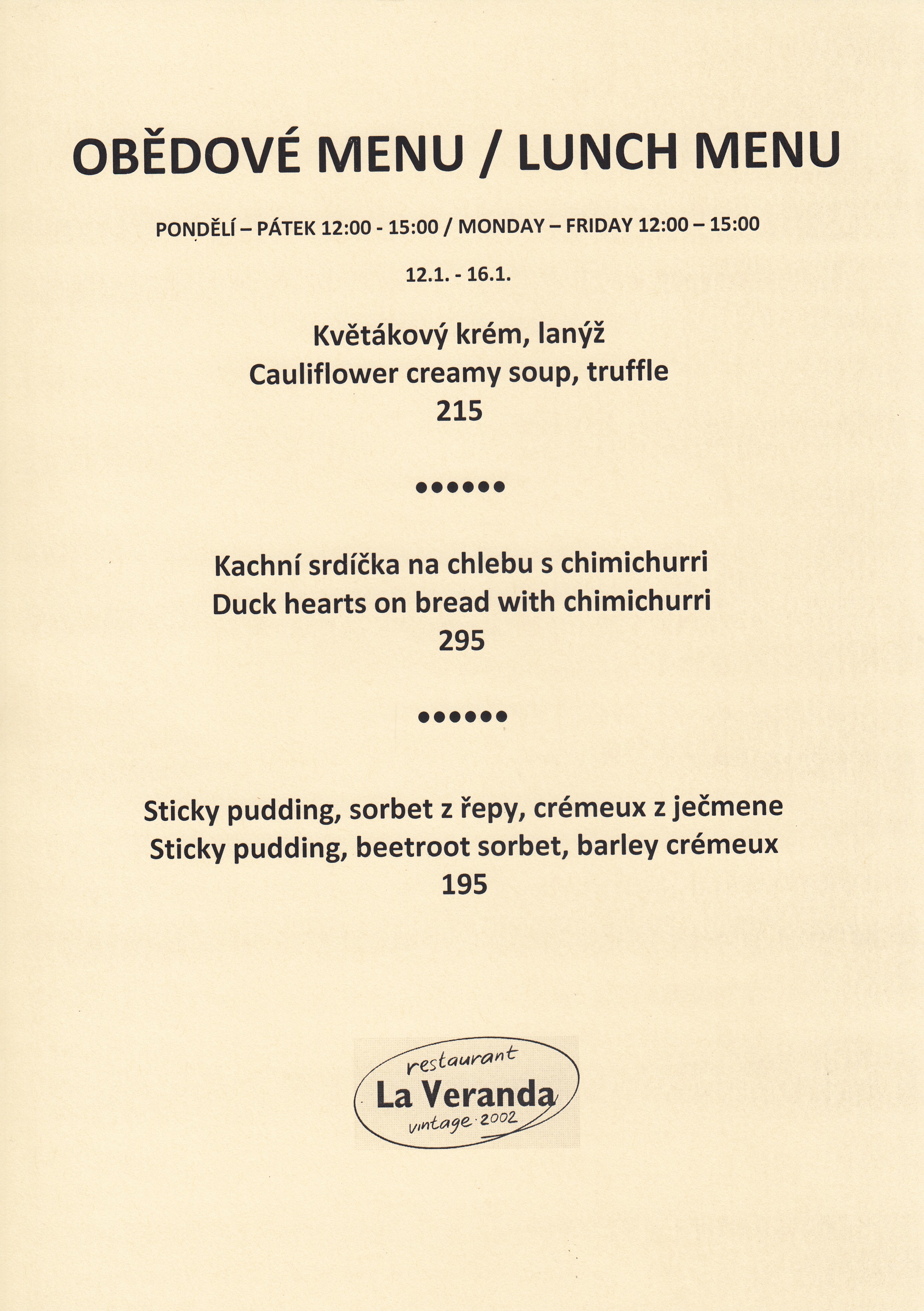 "Ve světě, v Evropě, v republice, v Praze, ba i na ulici mohou řádit všelijaké krize, ale v La Verandě u jejích stolů, tam je svět ještě stále v naprostém pořádku: vynikající jídlo, skvělé víno a obsluha, co si hosta nejen váží, ale doslova hýčká. Najíst a napít se v La Verandě je potěšení smyslů a balzám na duši. "