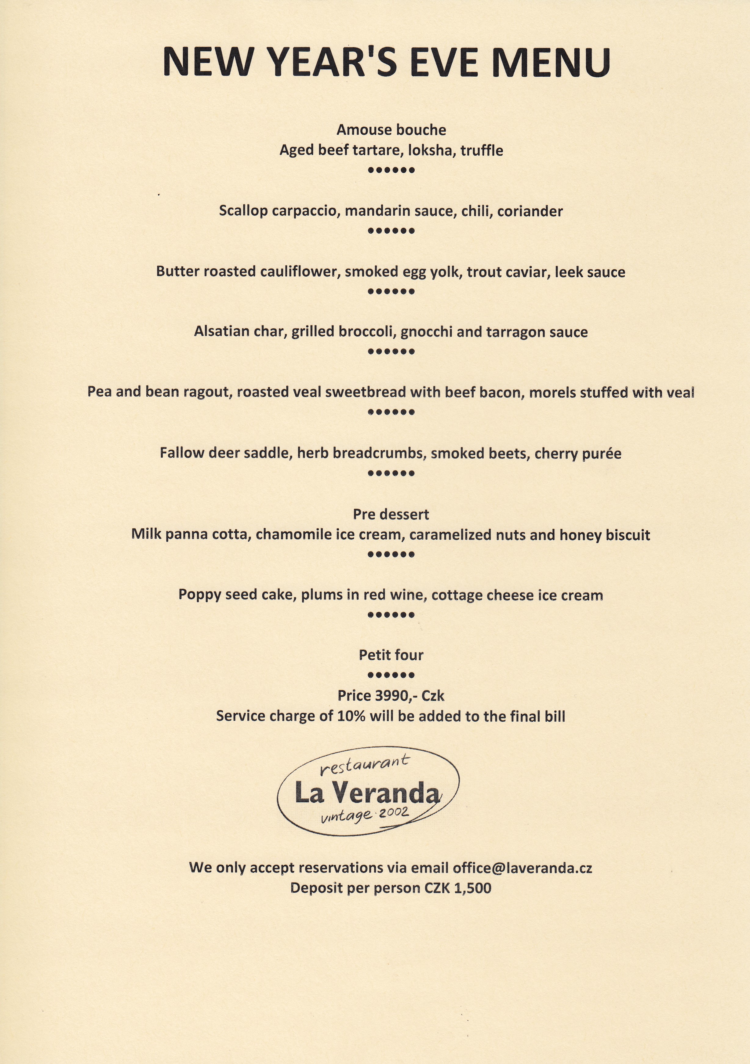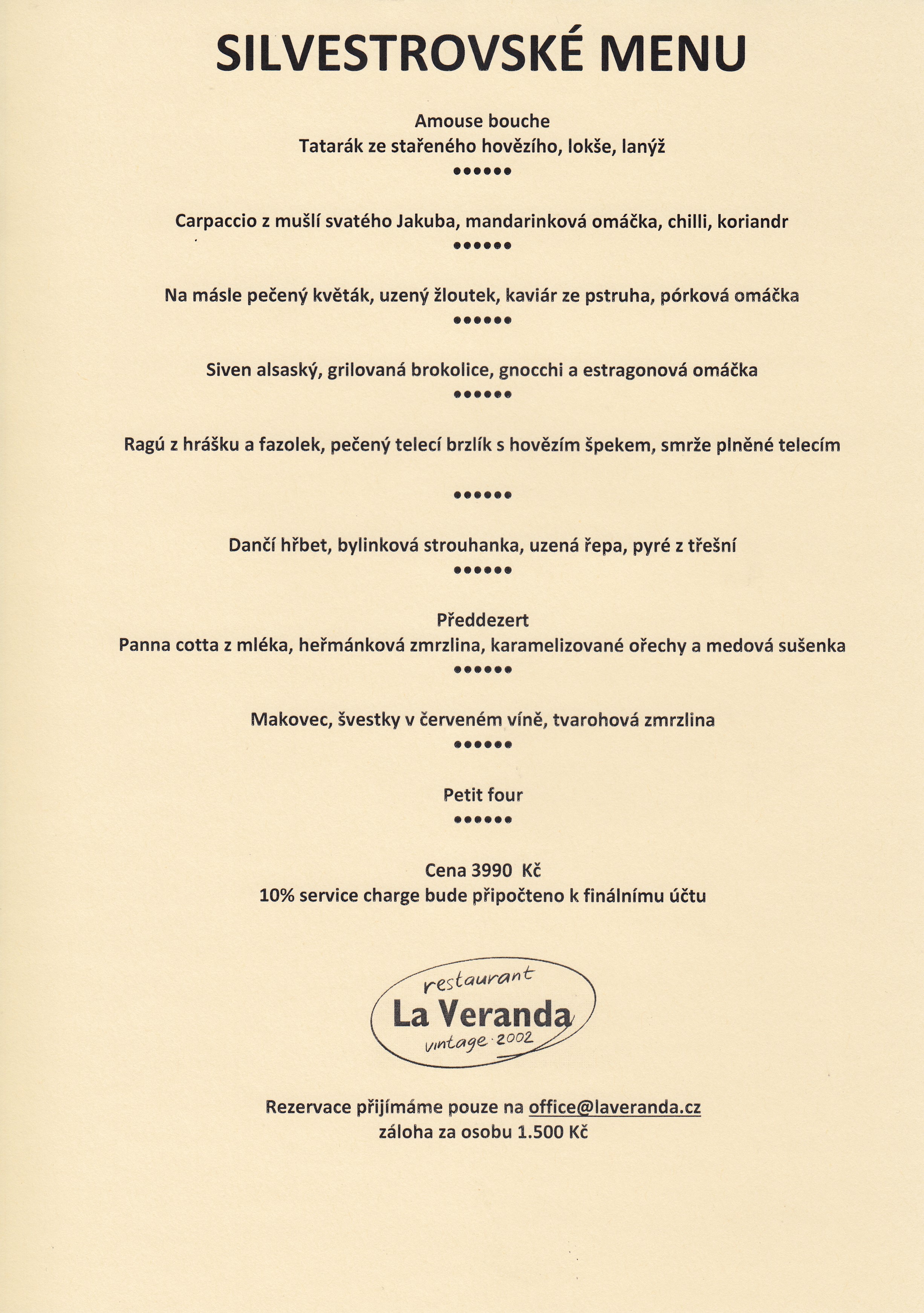 "Ve světě, v Evropě, v republice, v Praze, ba i na ulici mohou řádit všelijaké krize, ale v La Verandě u jejích stolů, tam je svět ještě stále v naprostém pořádku: vynikající jídlo, skvělé víno a obsluha, co si hosta nejen váží, ale doslova hýčká. Najíst a napít se v La Verandě je potěšení smyslů a balzám na duši. "